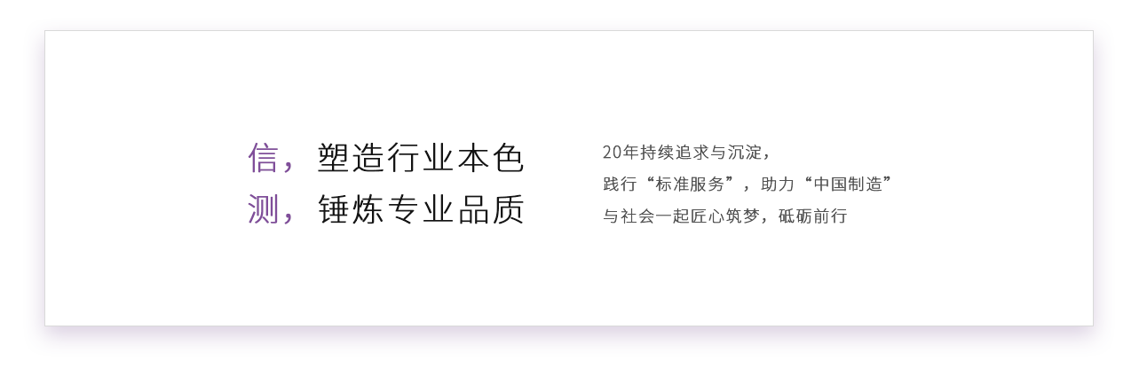 信測標(biāo)準(zhǔn)擁有多項專利技術(shù)和軟件著作權(quán),先后獲得“國家級高新技術(shù)企業(yè)”、“廣東省中小企業(yè)公共技術(shù)服務(wù)示范平臺”、“江蘇省生產(chǎn)性服務(wù)業(yè)領(lǐng)軍企業(yè)”、“廣東省名牌企業(yè)”、“深圳市生產(chǎn)性服務(wù)業(yè)公共服務(wù)平臺”等稱號。公司秉承“立信、善測”的經(jīng)營理念,致力于通過卓越的服務(wù),幫助客戶提高研發(fā)和創(chuàng)新水平,提升產(chǎn)品質(zhì)量,創(chuàng)造美好生活。